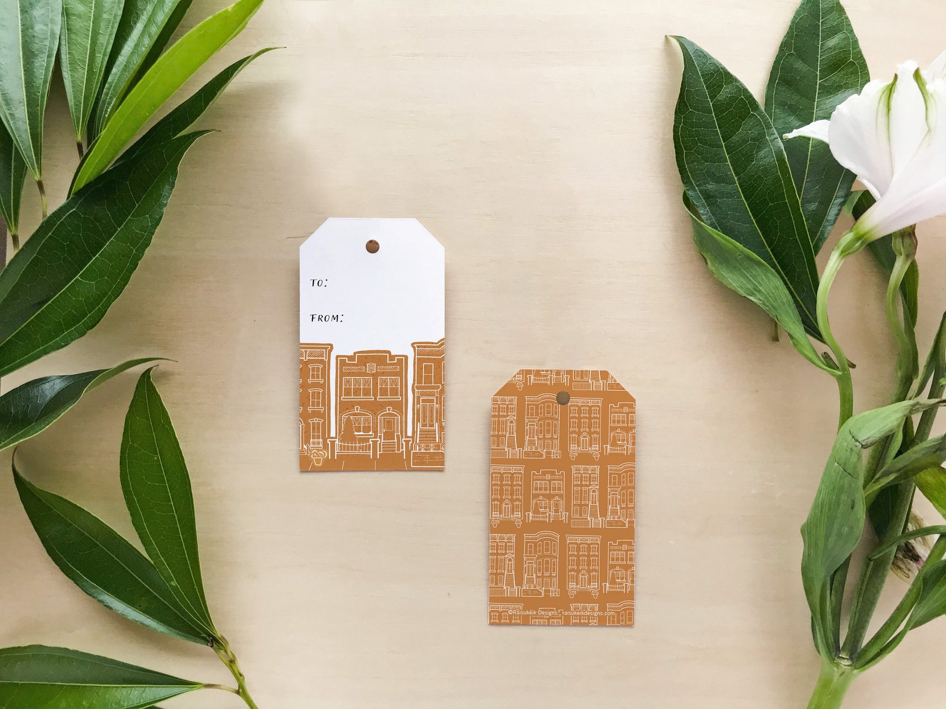Bring the best of city life to your gifts with the “Gingerbread Brownstones” gift tag.