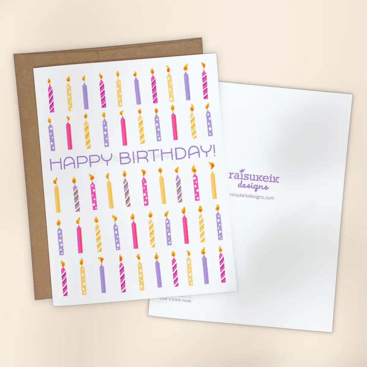 Celebrate their special day with a simple yet striking Risograph design! This happy birthday card features the bright, warm glow of birthday candles. This is the perfect card for anyone who loves a bold, modern birthday design.