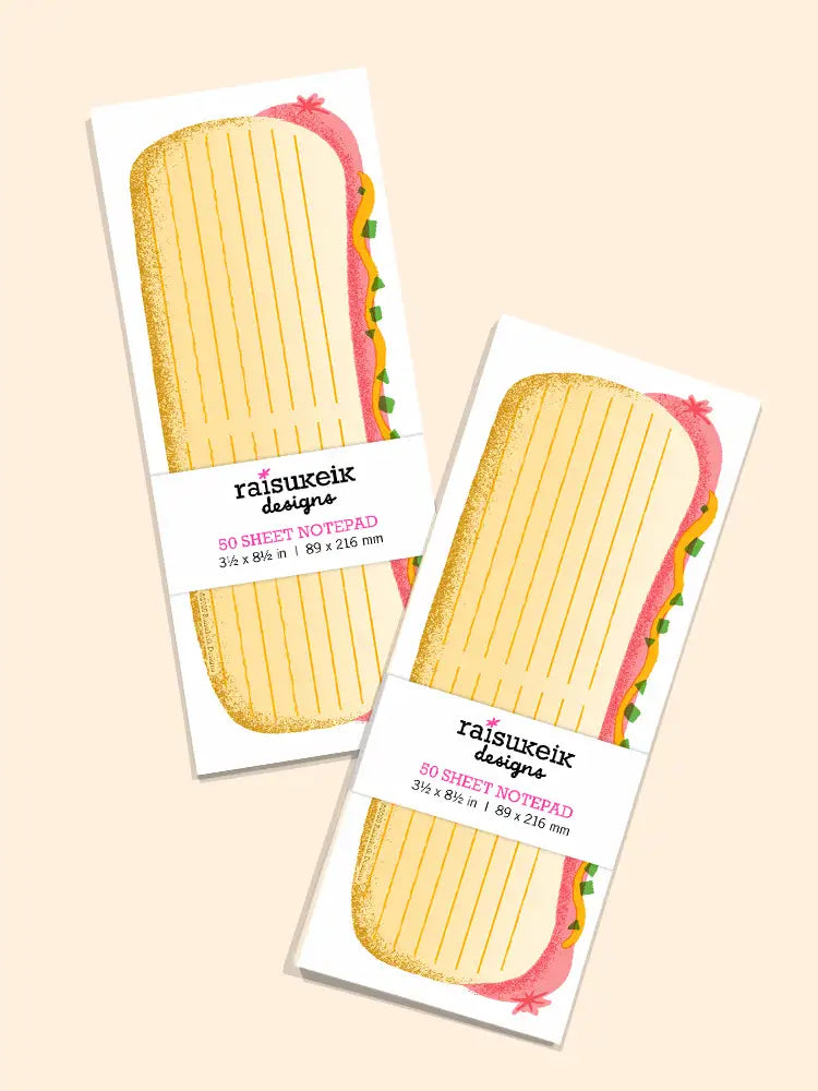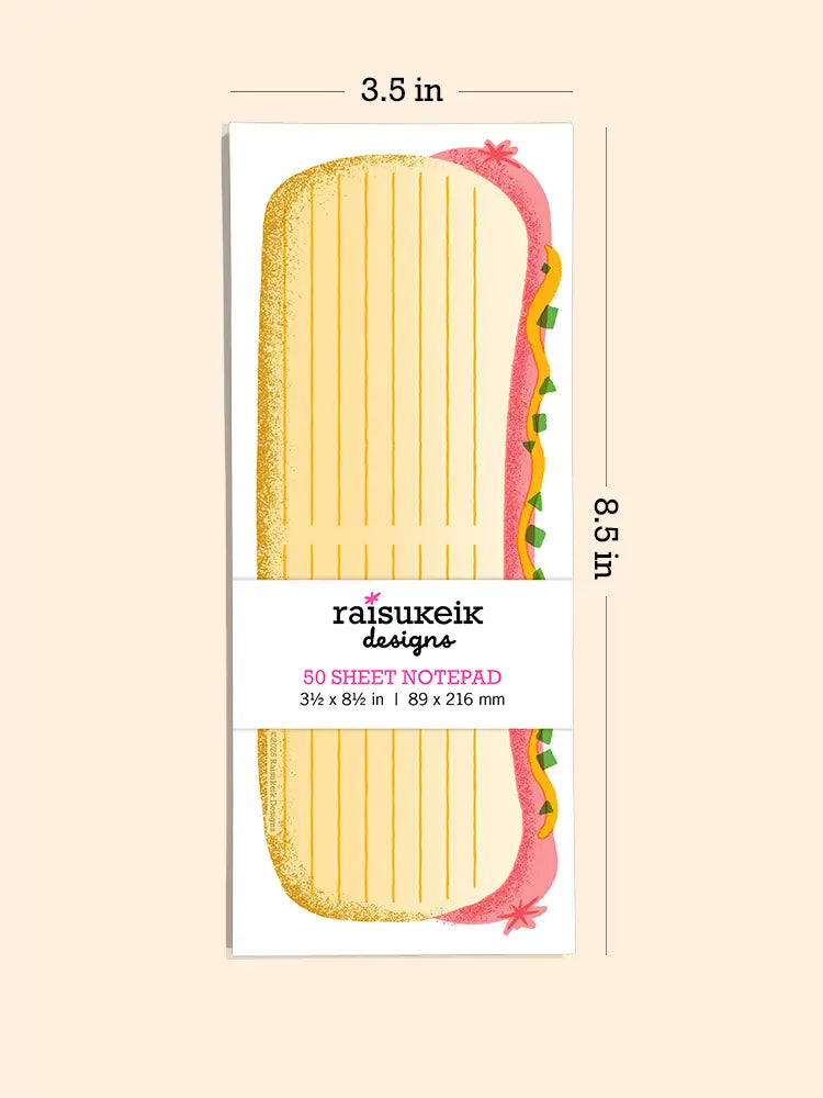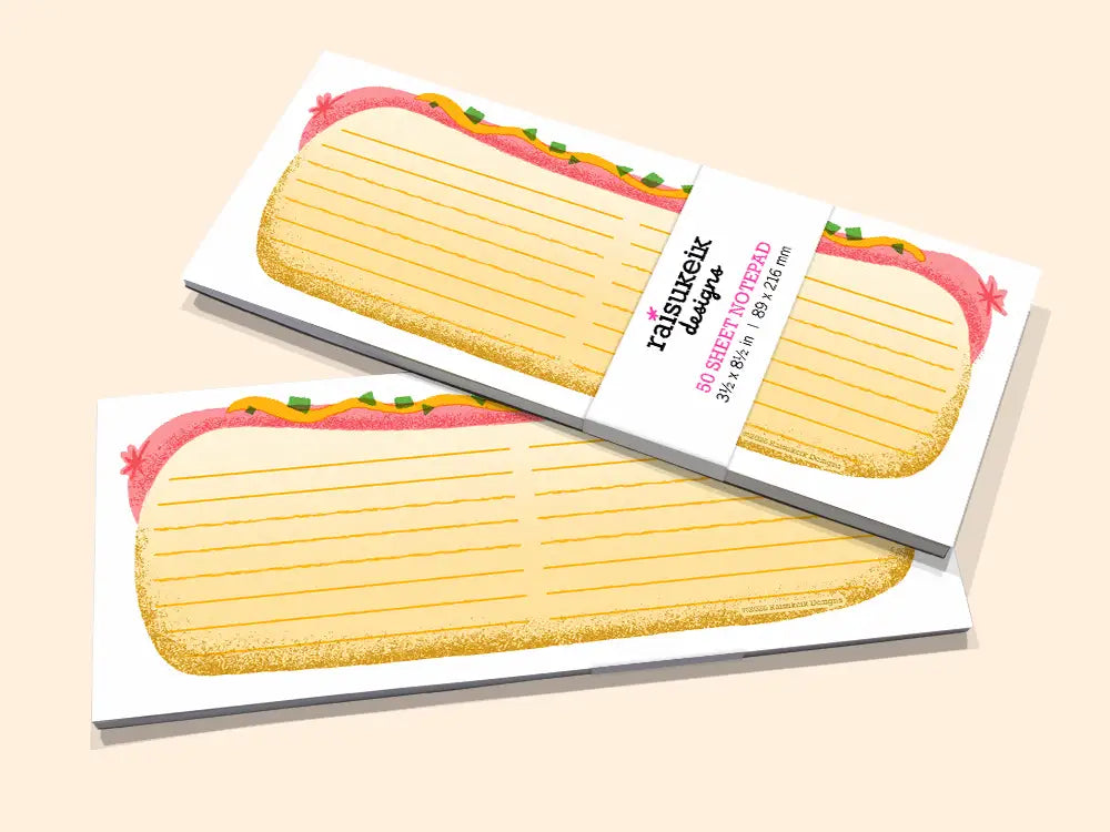 Ready to relish your note-taking game? This hot dog notepad complete with the fixin's comes with 2 ruled columns making it the perfect companion for jotting down everything from grocery lists to brilliant ideas! It's perfectly sized to fit on your kitchen counter or in your bag.