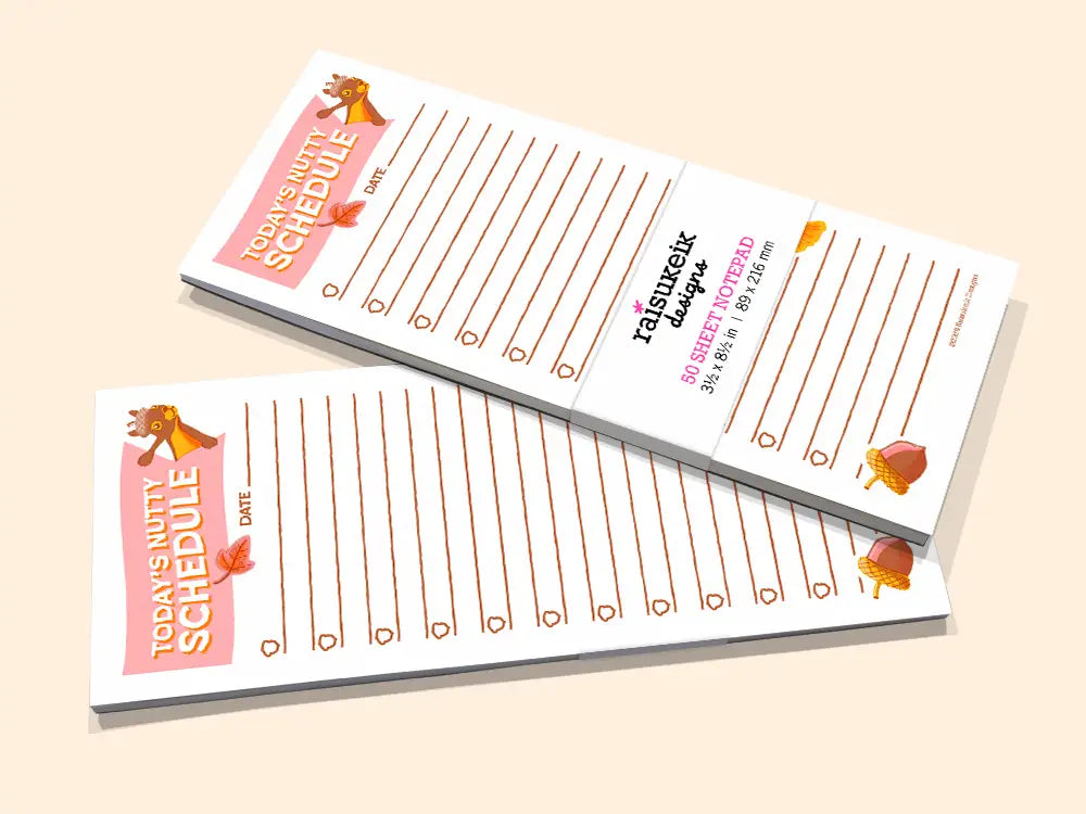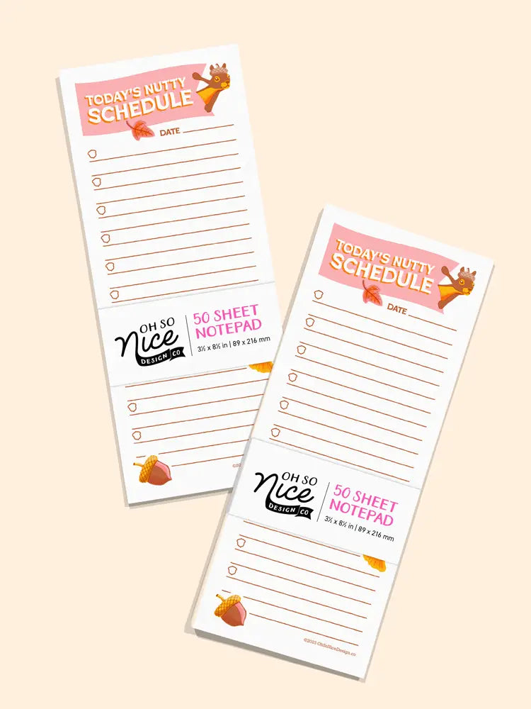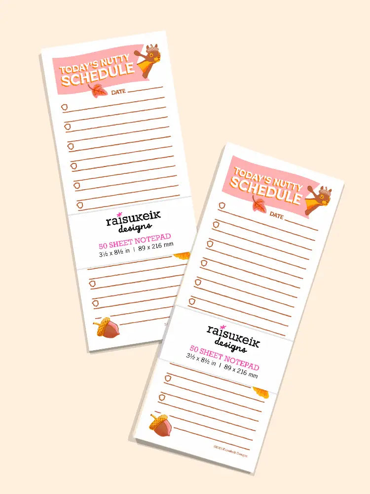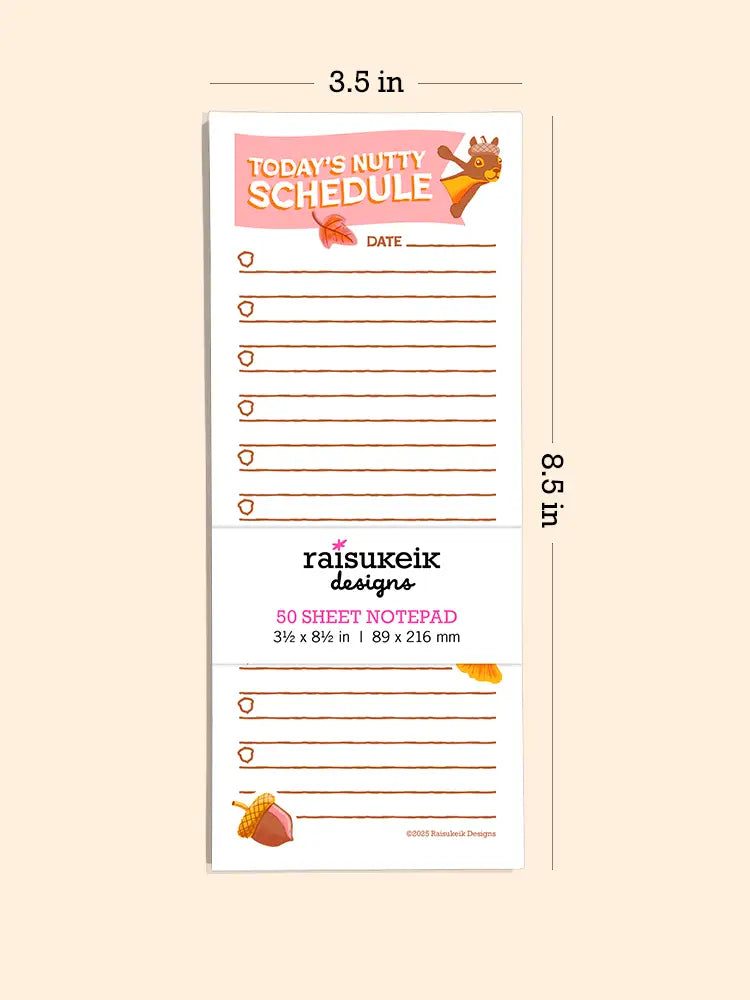 Tackle your nutty schedule with this squirrely notepad! Complete with cozy autumn colors, leaves, and a squirrel, this design brings all the seasonal feels while keeping your daily tasks organized with handy checkboxes shaped like acorns.