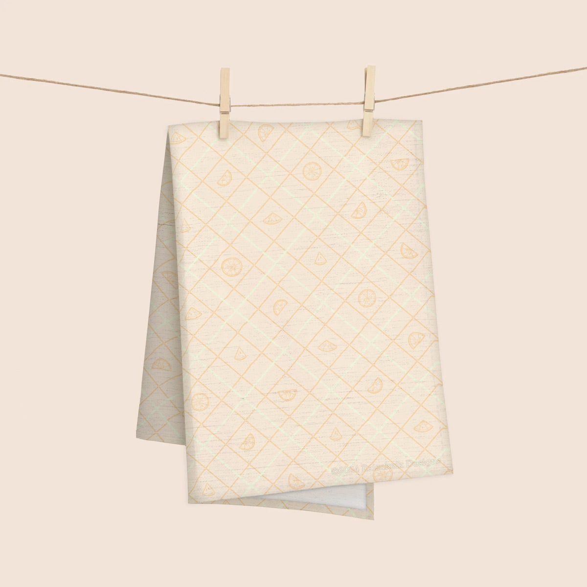 Orange Slices Argyle 100% French Linen Kitchen Tea Towel